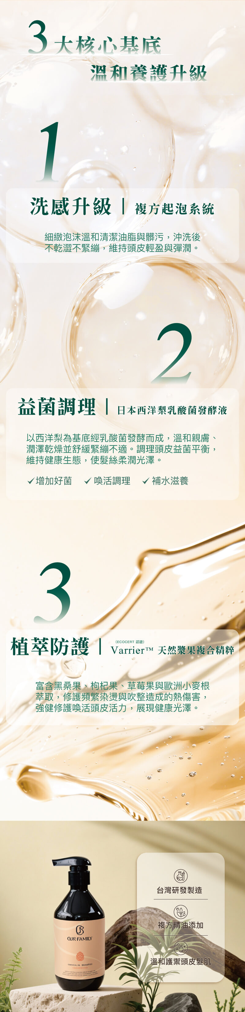 ✔ 益生菌添加:增加好菌,打造頭皮健康生態環境